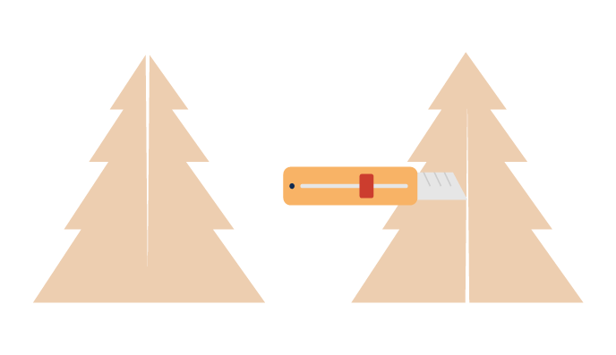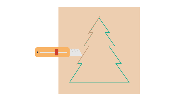 Pomocou nožníc, noža alebo pravítka vyrežte z kartónu vianočný stromček podľa načrtnutého obrysu. Aby bol rez hladký, použite čo najpresnejší nástroj.