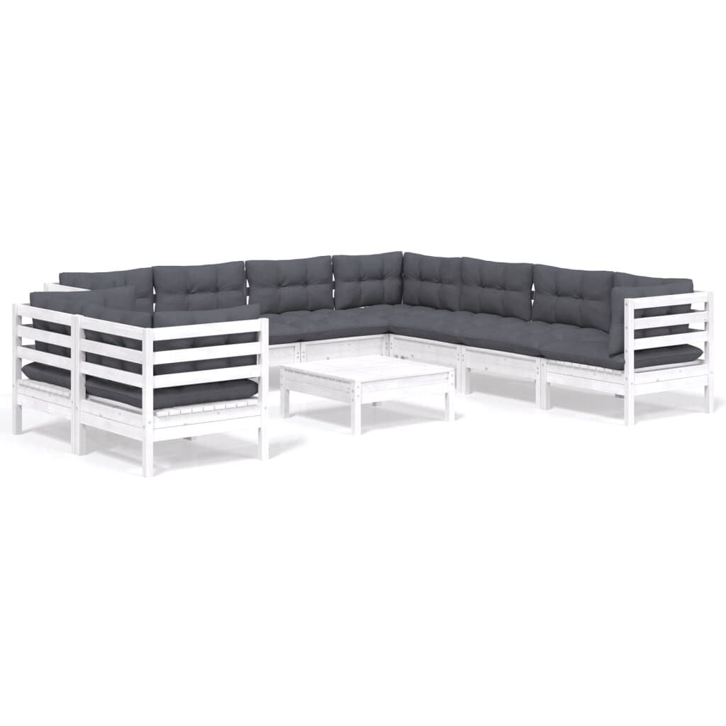 vidaXL 10-dielna záhradná súprava s vankúšmi biela borovicový masív