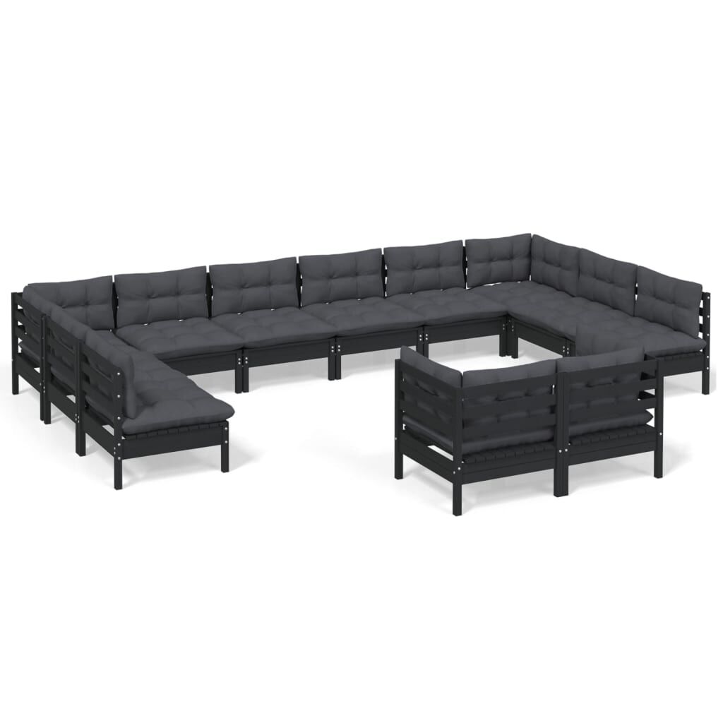 vidaXL 12-dielna záhradná súprava s vankúšmi čierna borovicový masív