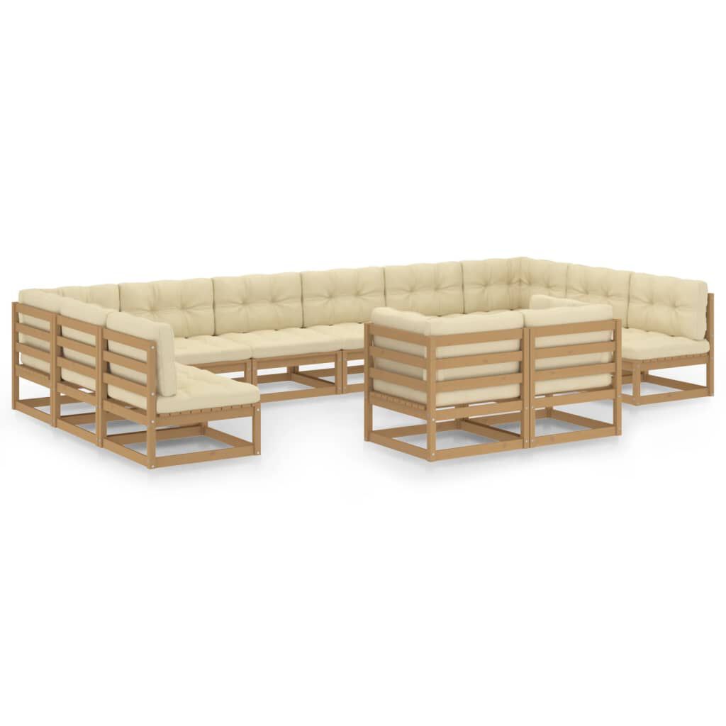 vidaXL 12-dielna záhradná súprava s vankúšmi hnedá borovicový masív