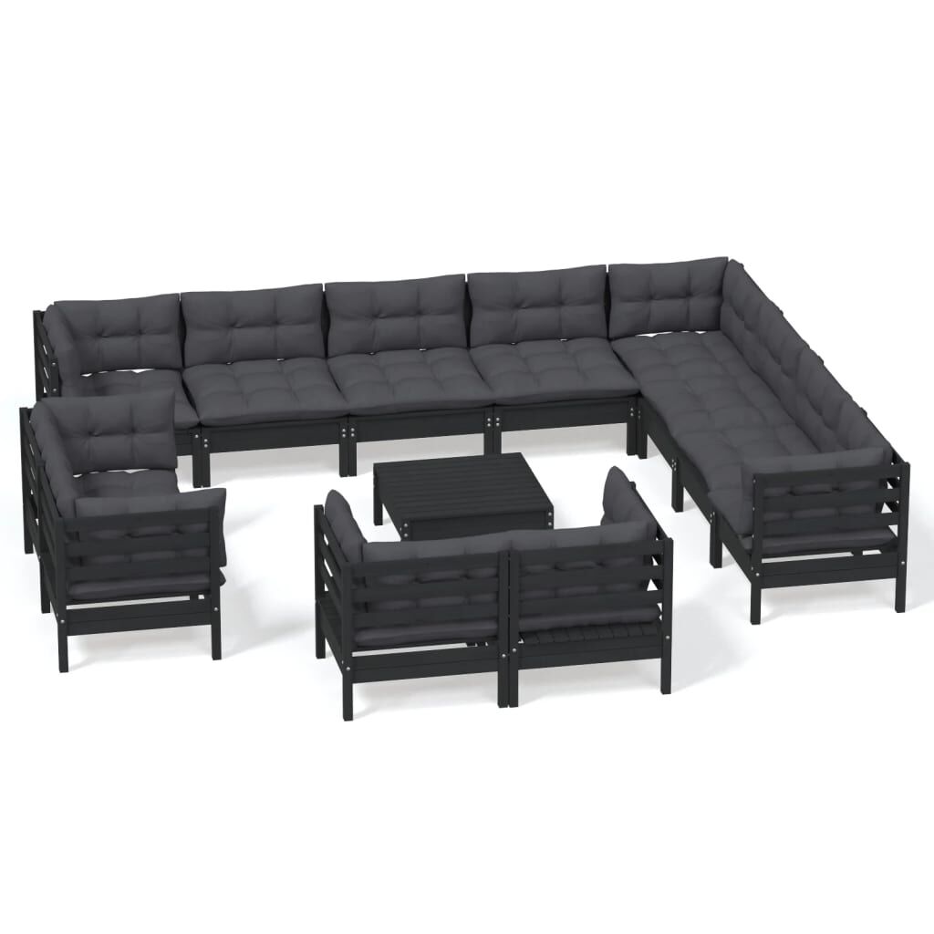 vidaXL 13-dielna záhradná súprava s vankúšmi čierna borovicový masív