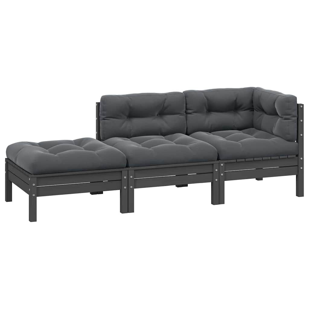 vidaXL 3-dielny záhradný sedací set so sedákmi sivý borovicový masív