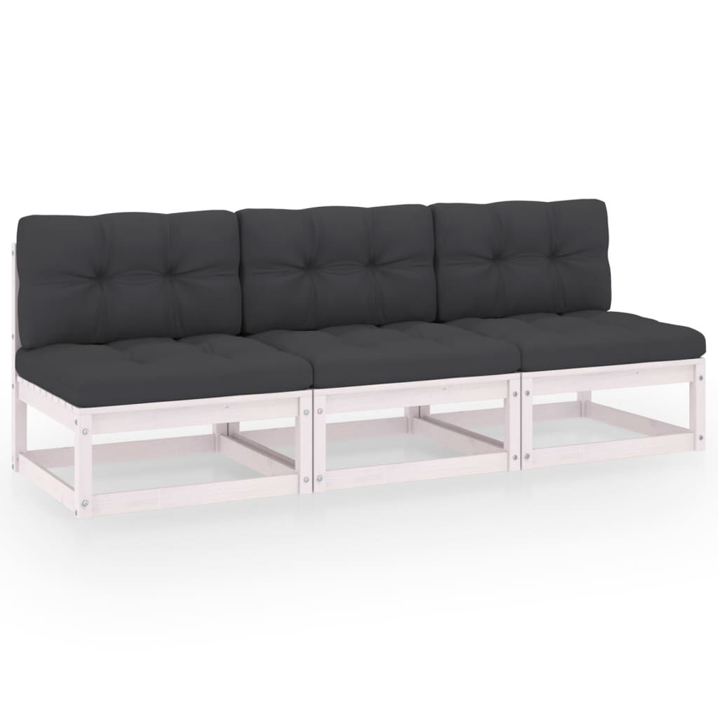 vidaXL 3-miesta pohovka s podložkami borovicový masív