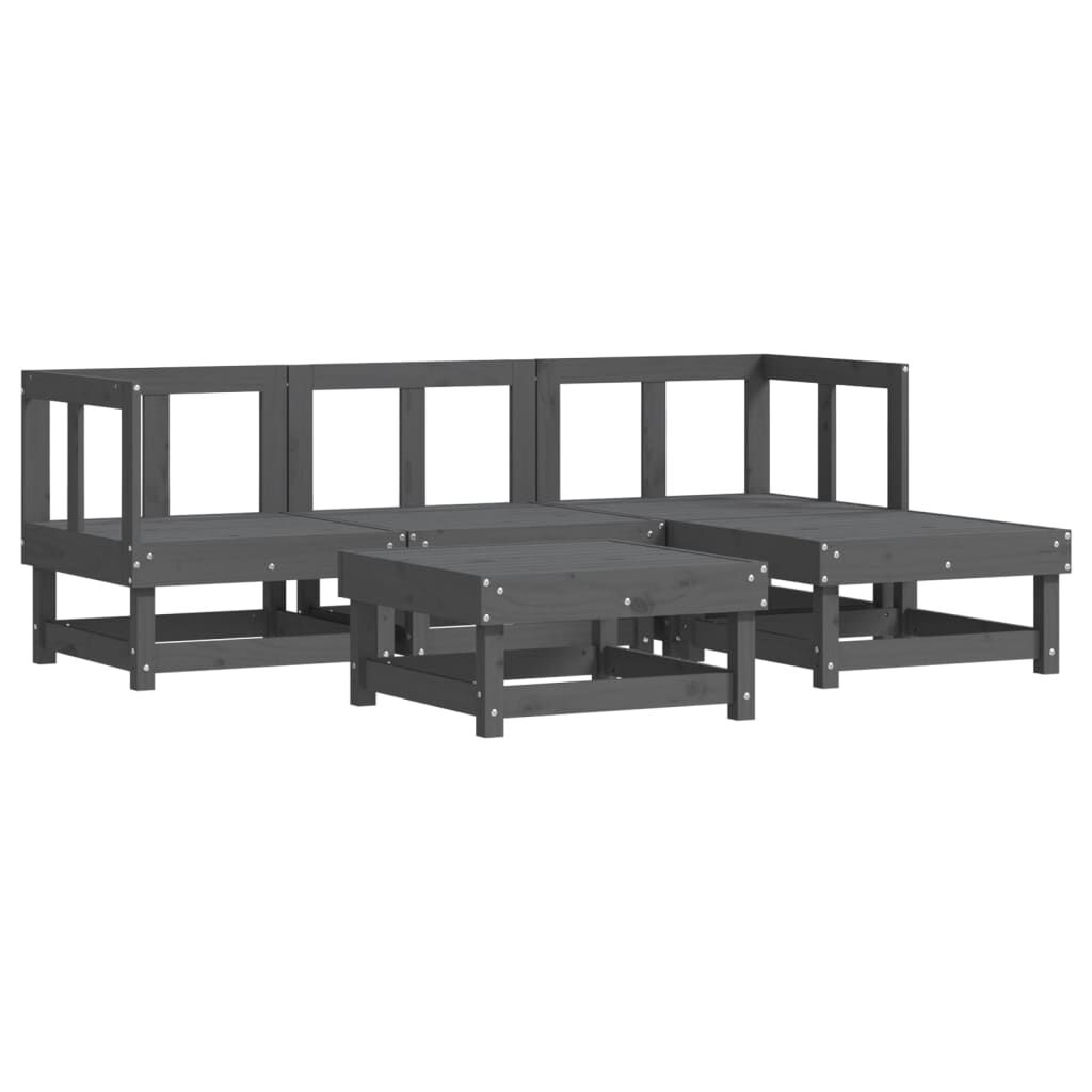 vidaXL 5-dielna záhradná sedacia súprava sivá borovicový masív