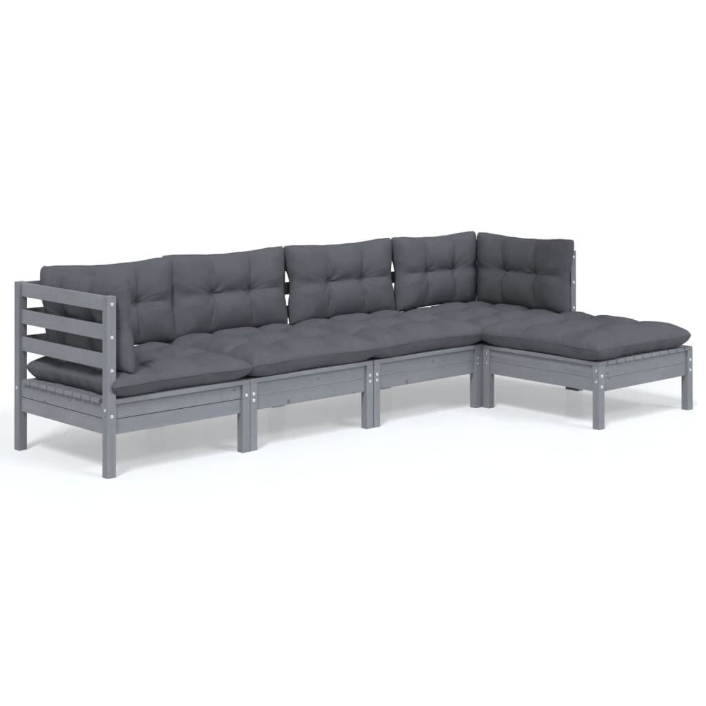 vidaXL 5-dielna záhradná súprava s vankúšmi sivá borovicový masív