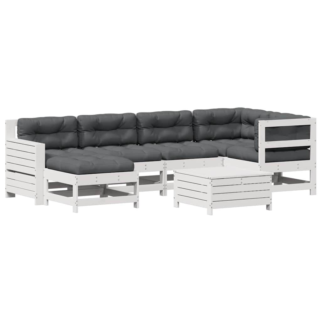 vidaXL 7-dielna záhradná súprava s podložkami biela borovicový masív