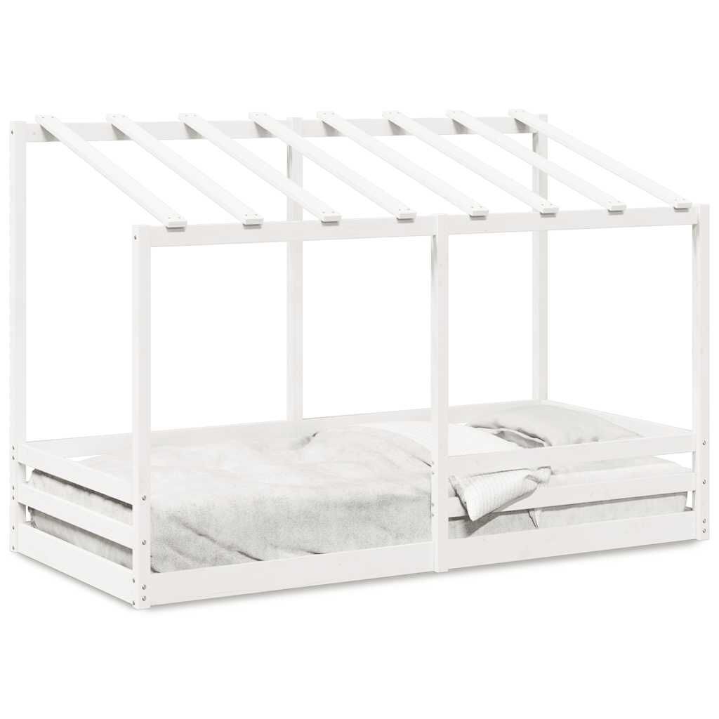 vidaXL Detská posteľ so strechou biela 100x200 cm borovicový masív