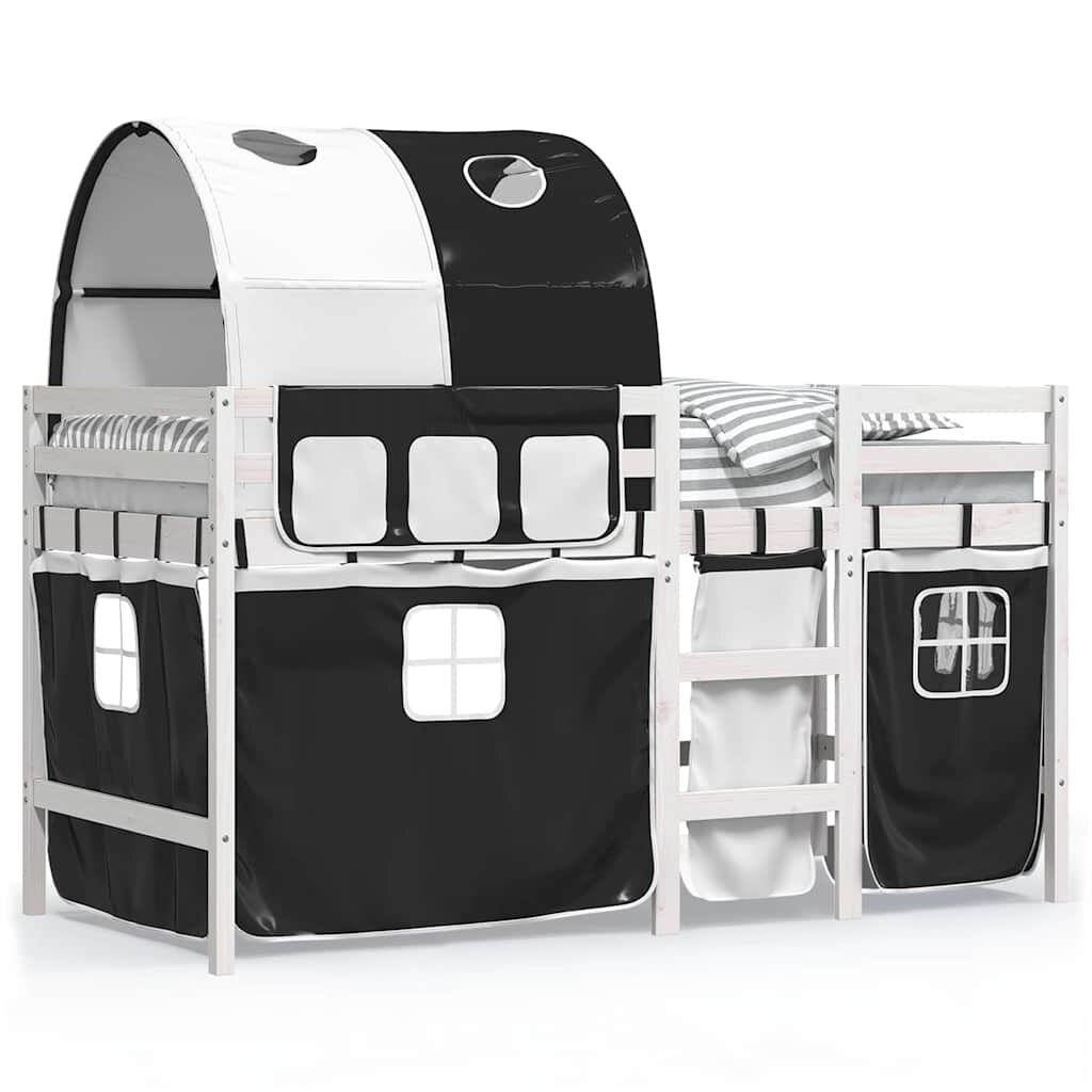 vidaXL Detská vyvýšená posteľ tunel bielo-čierna 90x190 cm borovica