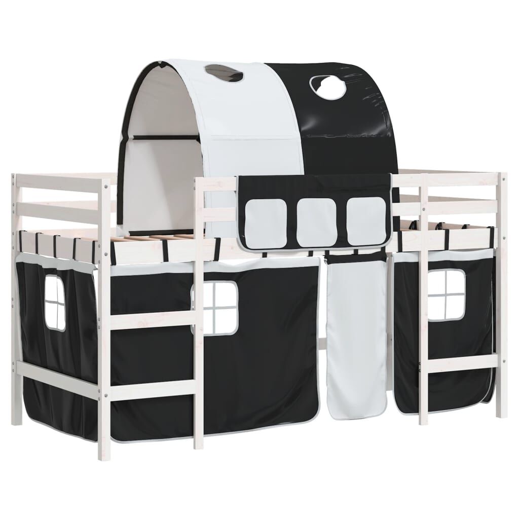 vidaXL Detská vyvýšená posteľ tunel bielo-čierna 90x200 cm borovica
