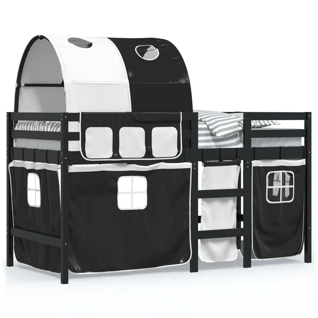 vidaXL Detská vyvýšená posteľ tunel bielo-čierna 90x200 cm borovica