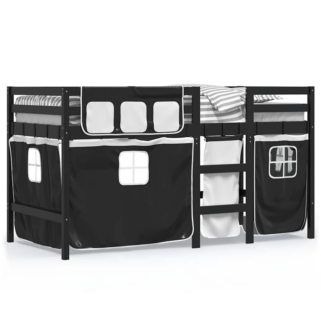 vidaXL Detská vyvýšená posteľ závesy bielo-čierna 90x190 cm borovica