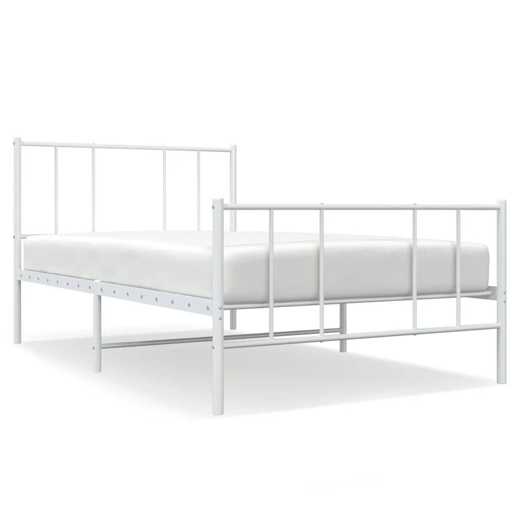 vidaXL Kovový rám postele s čelom a podnožkou biely 100x190 cm