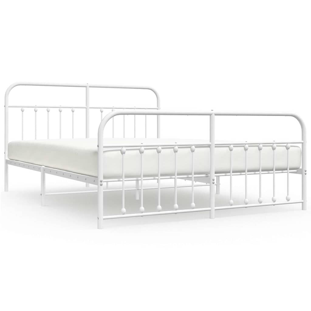 vidaXL Kovový rám postele s čelom a podnožkou biely 183x213 cm