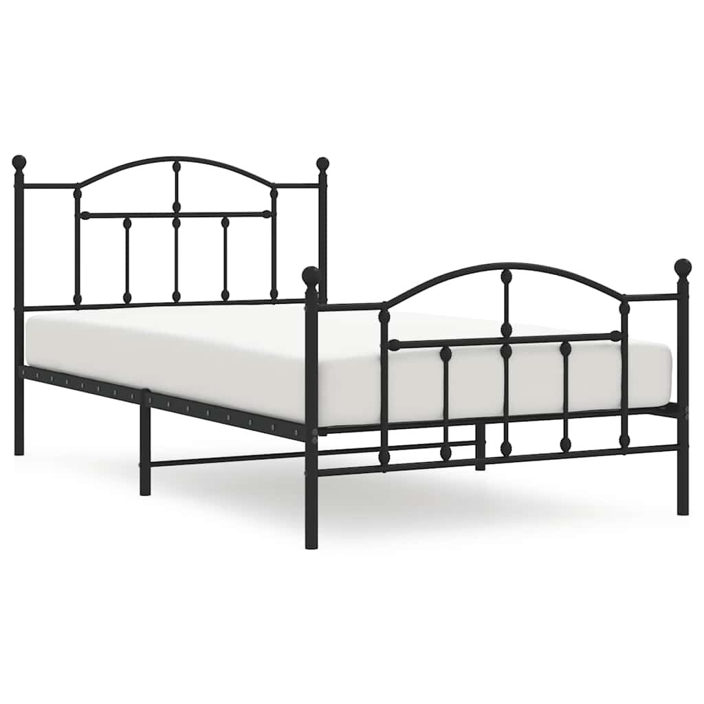 vidaXL Kovový rám postele s čelom a podnožkou čierny 100x200 cm