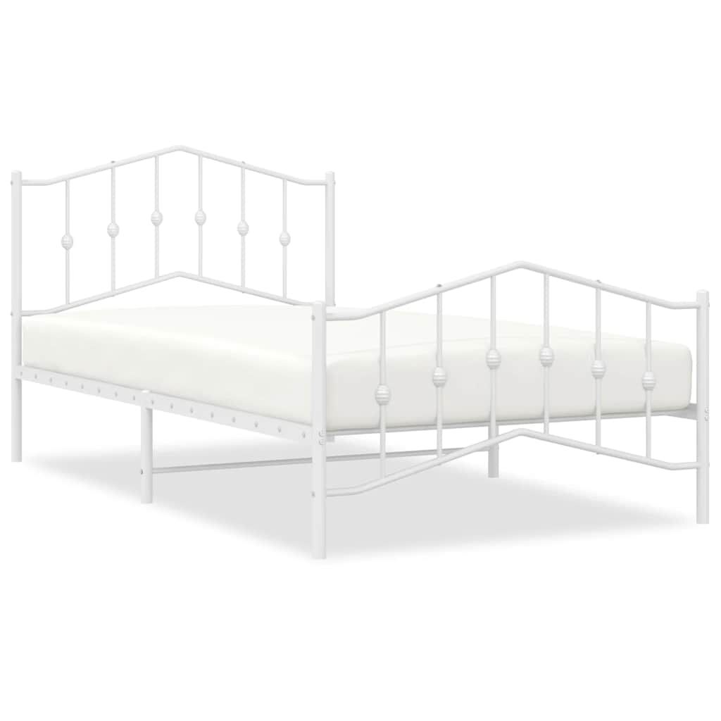 vidaXL Kovový rám postele s predným a zadným čelom biely 100x200 cm