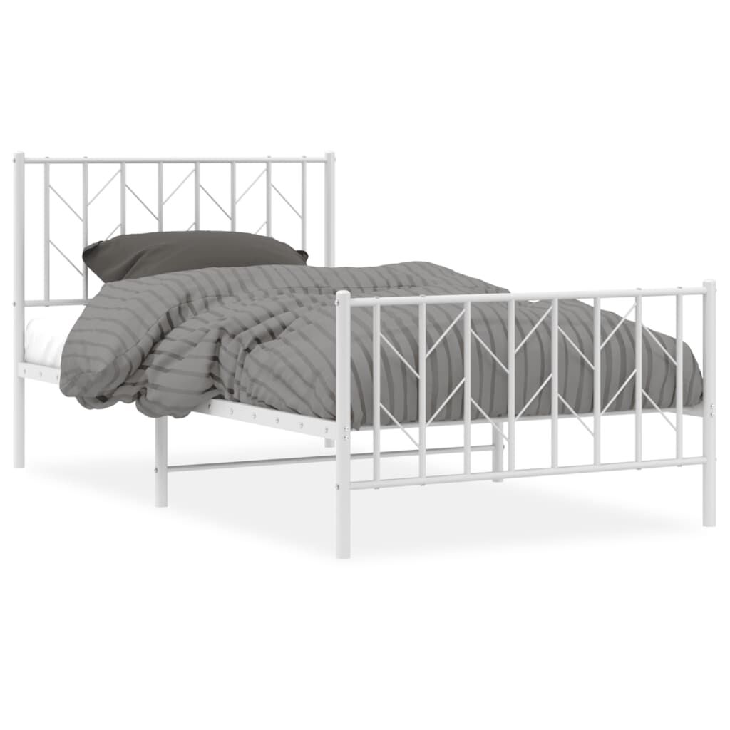 vidaXL Kovový rám postele s predným a zadným čelom biely 100x200 cm