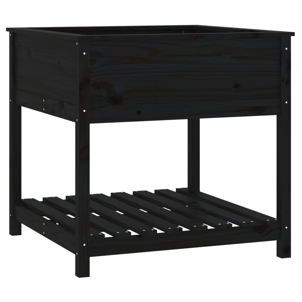 vidaXL Kvetináč s policou čierny 82,5x82,5x81 cm masívna borovica