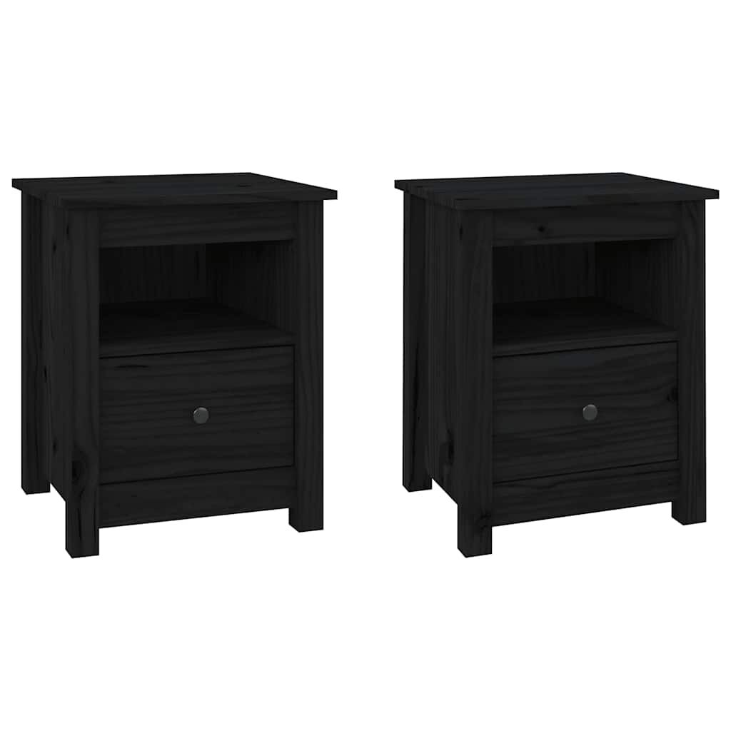vidaXL Nočné stolíky 2 ks čierne 40x35x49 cm masívne borovicové drevo