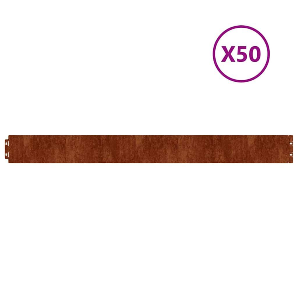 vidaXL Obruby na trávnik 50 ks 10x103 cm pružná korténová oceľ