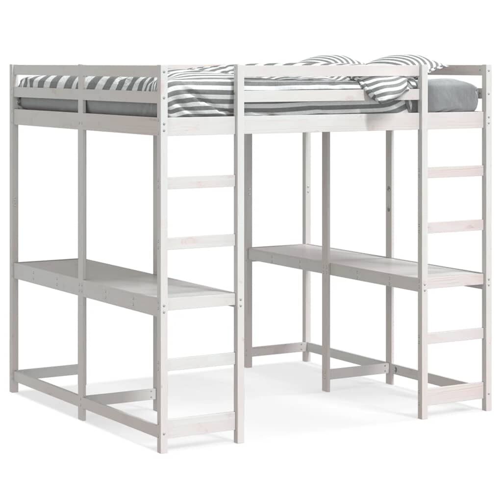 vidaXL Poschodová posteľ stolík a rebrík biela 140x200 cm borovica