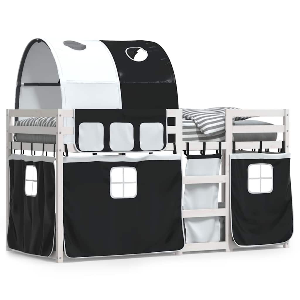 vidaXL Poschodová posteľ závesy bielo-čierna 90x190cm masívna borovica