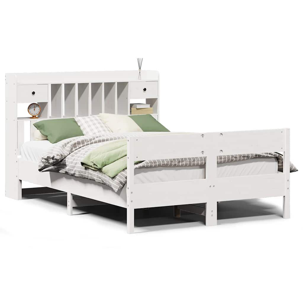 vidaXL Posteľ s knižnicou bez matraca biela 140x200cm borovicový masív