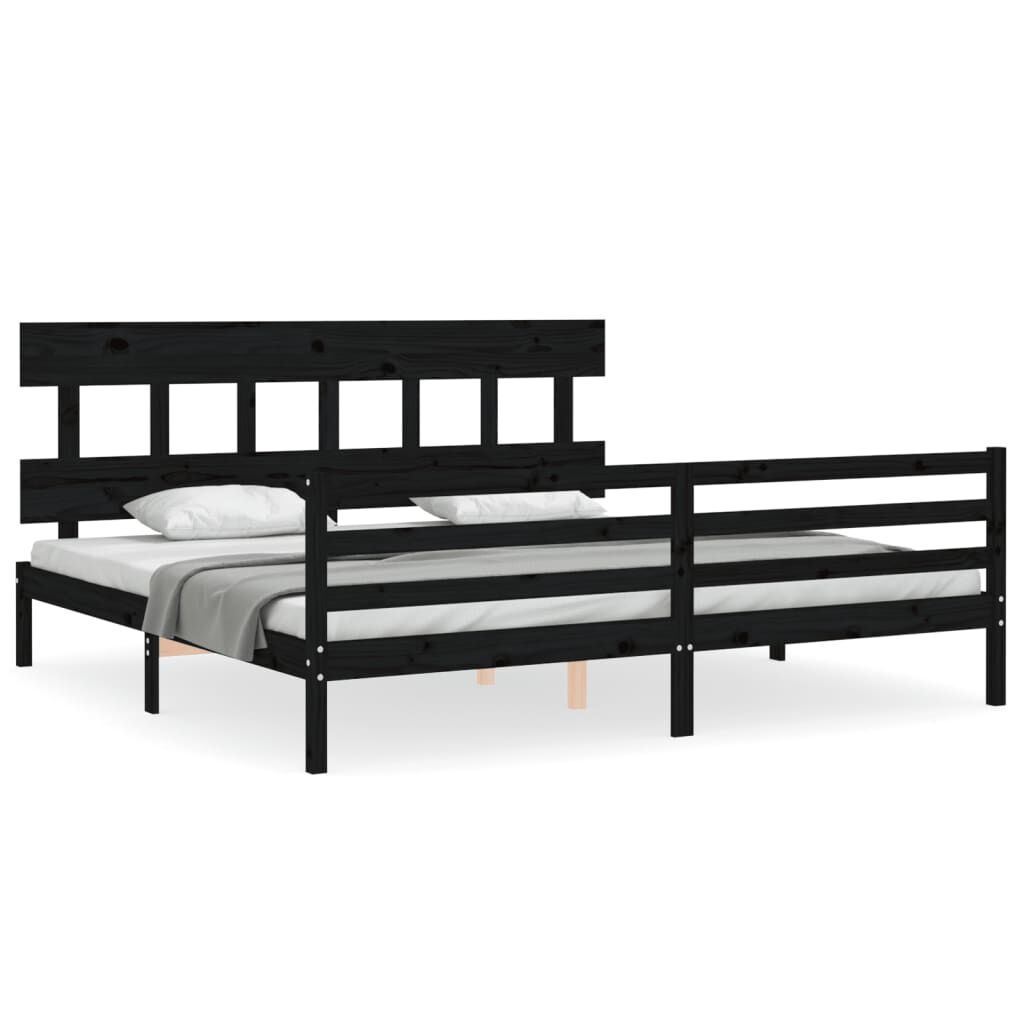 vidaXL Posteľný rám s čelom čierny 200x200 cm masívne drevo