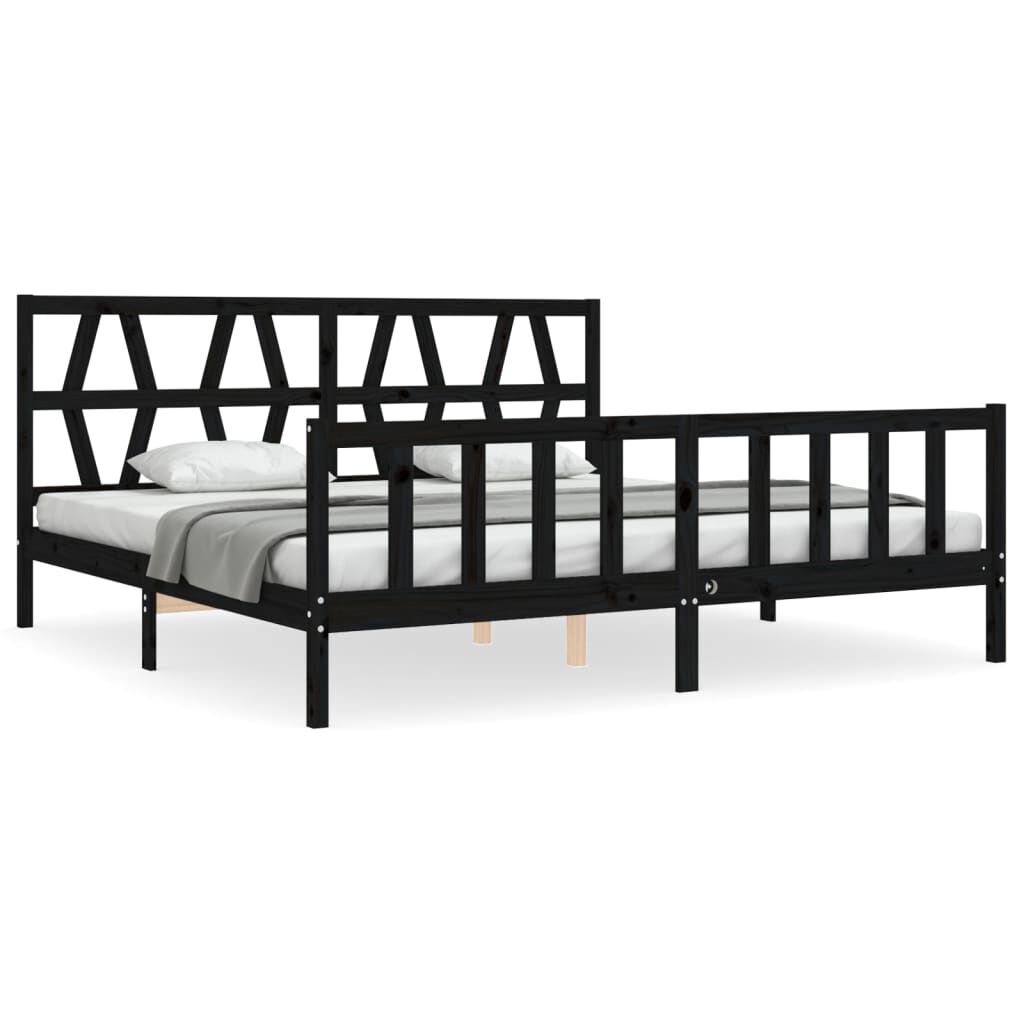 vidaXL Posteľný rám s čelom čierny 200x200 cm masívne drevo