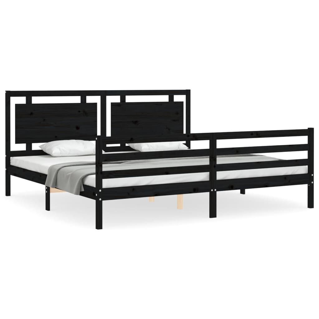 vidaXL Posteľný rám s čelom čierny 200x200 cm masívne drevo