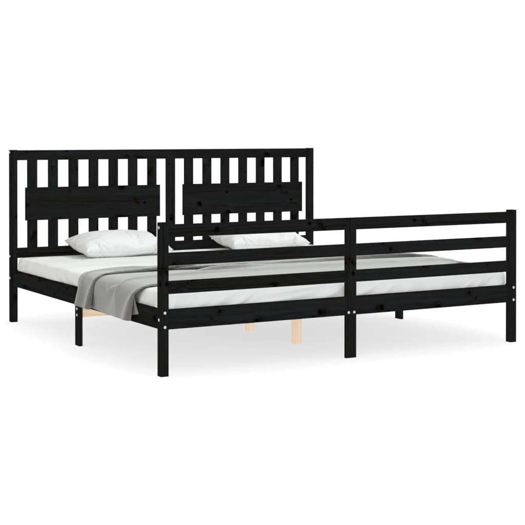 vidaXL Posteľný rám s čelom čierny 200x200 cm masívne drevo