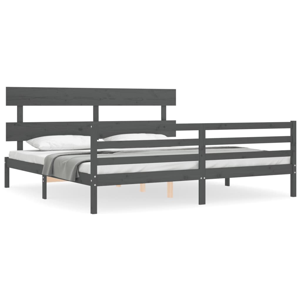 vidaXL Posteľný rám s čelom sivý 200x200 cm masívne drevo