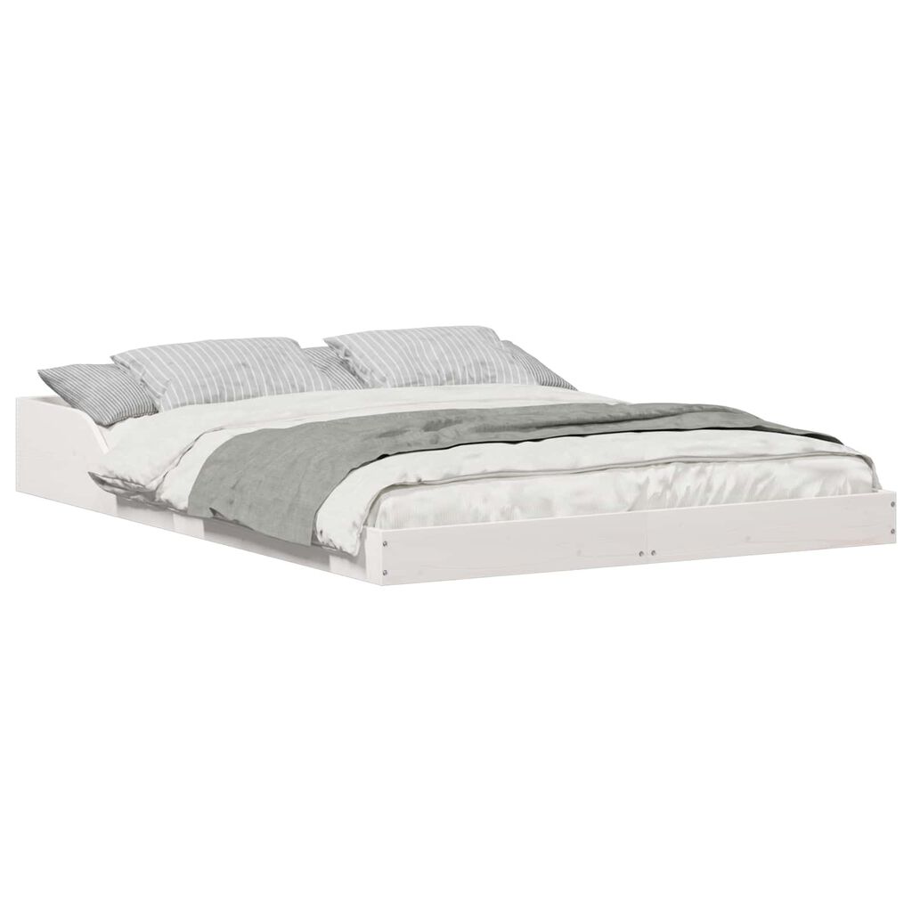 vidaXL Rám postele Biela 135 x 190 cm Masívne borovicové drevo