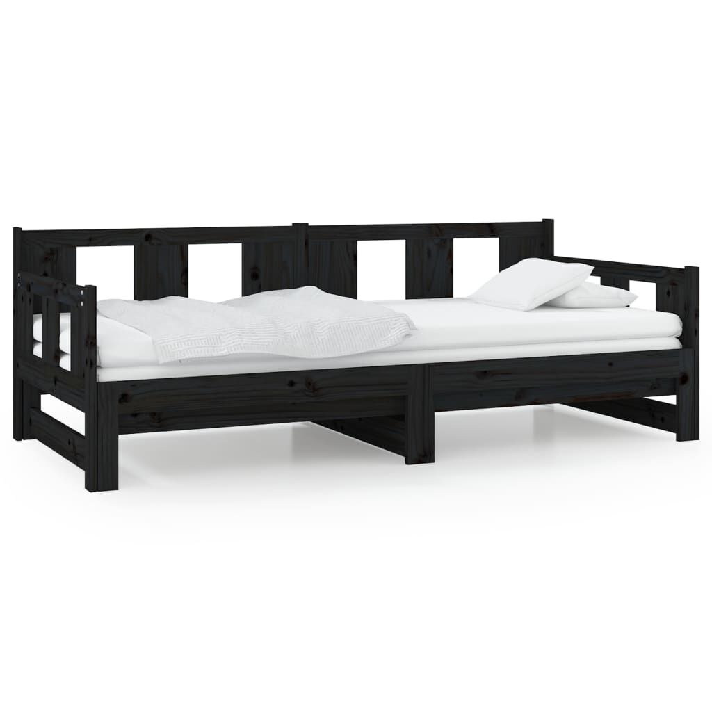 vidaXL Rozkladacia denná posteľ čierna borovicový masív 2x(90x190) cm