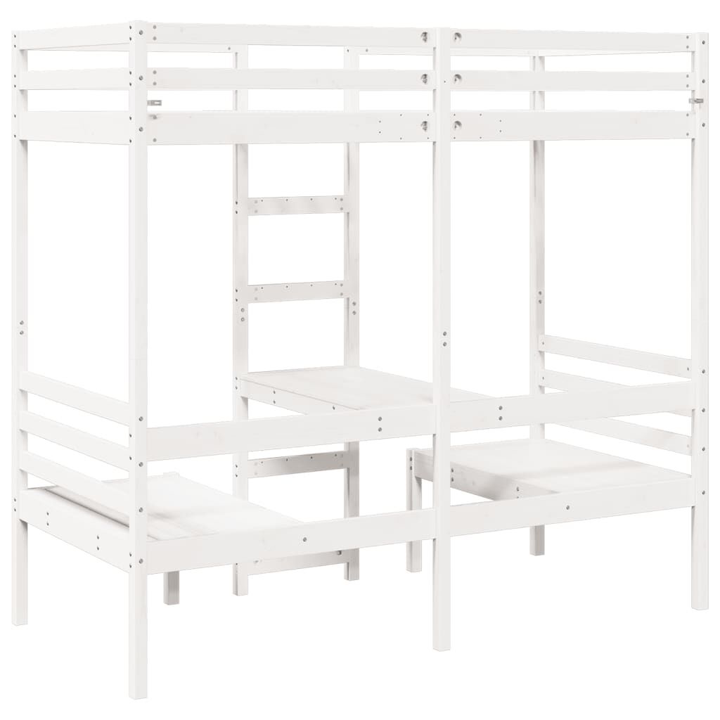 vidaXL Vyvýšená posteľ+stôl, stoličky, biela 90x200cm borovicový masív