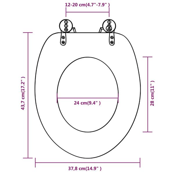 Poklop a sedadlo z MDF sa vyznačujú vysokou tuhosťou, tvrdosťou a pevnosťou. Vďaka pántom z extra pevnej a trvácnej zlatiny chrómu a zinku vám toto WC sedadlo vydrží naozaj dlho. WC sedadlo je vhodné na všetky bežné WC misy a šírka pántov sa dá nastaviť v rozmedzí od 12 do 20 cm. Dá sa jednoducho namontovať a ľahko sa čistí.